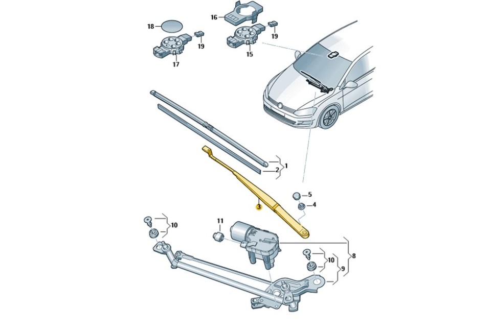 Originele ruitenwisserarm voor een Seat Leon (5F / 5FB‑serie)voorzijde.