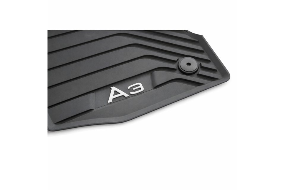 Deze originele all-weather vloermatten zijn speciaal ontworpen voor de Audi A3 (8Y) en sluiten perfect aan op de vloerafmetingen van het voertuig. Ze zijn gemaakt van een recyclebare, geurloze rubbersamenstelling en bieden optimale bescherming tegen vocht en vuil. Dankzij het A3-designlogo in contrasterende kleur op de voorste matten ogen ze bovendien stijlvol. Antislipnoppen aan de achterkant en een stevig bevestigingssysteem zorgen ervoor dat de matten altijd goed op hun plaats blijven liggen.