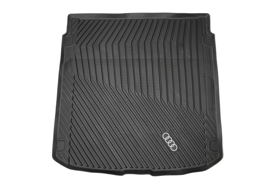 De op maat gemaakte kofferbakmat is robuust, wasbaar en biedt uitstekende bescherming voor de bagageruimte van uw Audi A5. De mat is voorzien van Audi-ringen in een contrasterende kleur en heeft een opstaande rand die de kofferbakbodem effectief beschermt tegen vocht en vuil. De mat is vervaardigd uit hoogwaardig kunststof met 20% gerecycled materiaal en kan bij correcte verwerking worden gerecycled.