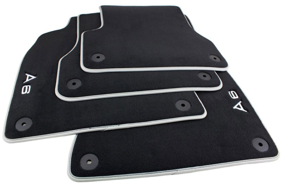 Deze hoogwaardige textiele vloermatten zijn optimaal afgestemd op de vloerafmetingen van uw Audi A6. De matten zijn vervaardigd uit duurzaam, dicht geweven velours in zielkleur (zwart) en afgewerkt met grijszilveren A6-letters en een zielkleurige nubuck rand. Dankzij de antislip onderlaag en de ronde drukknoopbevestiging blijven de matten stevig en veilig op hun plaats liggen. Originele Audi A6 / S6 (C7 4G) premium textiel vloermatten. De pasvorm is gegarandeerd, omdat het een origineel Audi-accessoire betreft. De matten zijn extreem duurzaam en geven het interieur een hoogwaardige uitstraling.