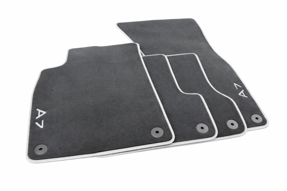Deze originele Audi velours vloermattenset is speciaal ontwikkeld voor de Audi A7 (C7) Sportback en staat garant voor een perfecte pasvorm. De matten zijn vervaardigd uit hoogwaardig, dik velours en bieden een luxe uitstraling in combinatie met optimale duurzaamheid. Dankzij de originele bevestigingspunten blijven de matten stevig op hun plaats liggen, zonder te schuiven of om te krullen. De set is uitgevoerd in zwart met een stijlvolle zilveren randafwerking en voorzien van een A7-logo. Door het lage slijtagepercentage behouden de matten langdurig hun hoogwaardige uitstraling, ook bij intensief gebruik.