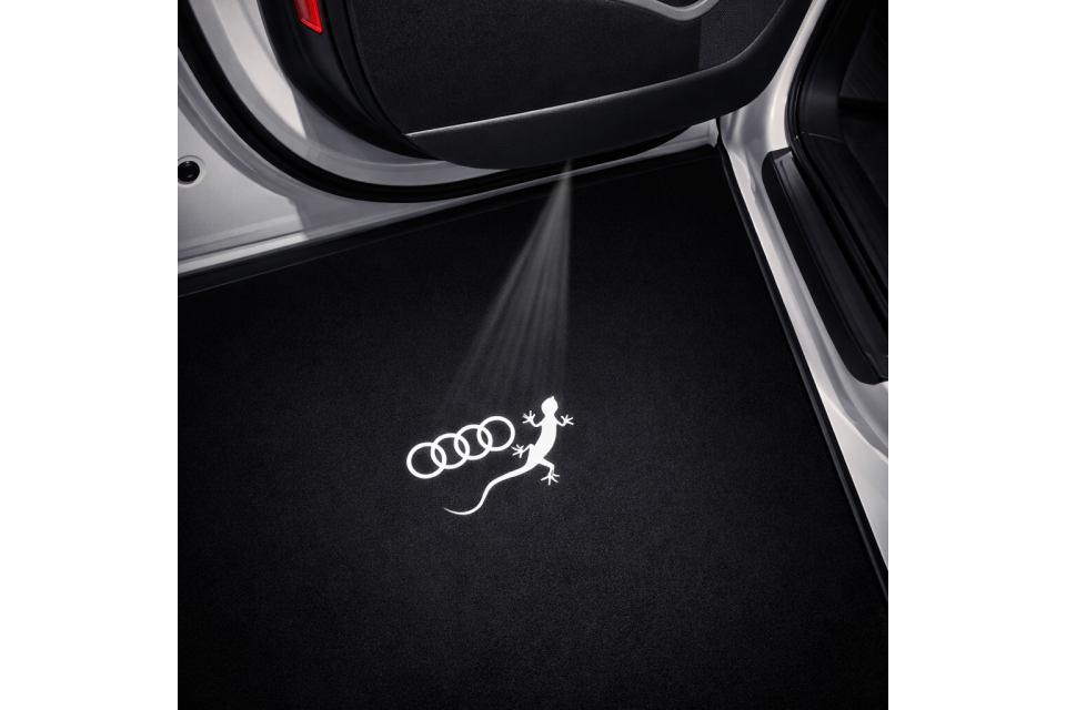 - Originele Audi instapverlichting, Audi-ringen met Gecko-projectie