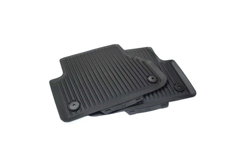 Deze originele Audi all-weather rubberen vloermatten voor de achterste voetenruimte zijn speciaal ontworpen voor de A4 en A5 (B9). Ze zijn vervaardigd uit duurzaam, geurloos en recyclebaar rubber dat de vloer optimaal beschermt tegen vuil, stilstaand water en vocht. Dankzij de antislipnoppen aan de achterkant en het drukknoop-bevestigingssysteem blijven de matten stevig op hun plaats, zelfs bij dagelijks gebruik. Perfecte bescherming en pasvorm – volledig in Audi-stijl.