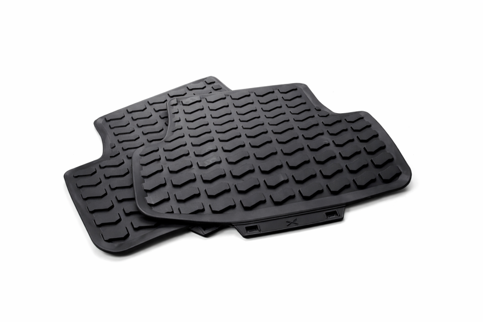 Deze allweather vloermatten zijn exact afgestemd op de vloerafmetingen van de Audi Q2. Dankzij de antislipnoppen aan de achterkant blijven de matten stevig op hun plaats liggen. Als originele Audi-accessoires bieden deze rubberen vloermatten voor de achterzijde een perfecte pasvorm. Ze zijn zeer robuust, duurzaam, eenvoudig te reinigen, geurloos en volledig recyclebaar. De matten worden geleverd in de kleur zwart. De set bestaat uit twee achterste vloermatten.