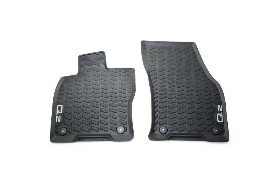 Als originele Audi-accessoires bieden deze rubberen matten een perfecte pasvorm. Ze zijn robuust, duurzaam, eenvoudig te reinigen, geurloos en volledig recyclebaar. Het ontwerp is voorzien van contrasterende Q2-letters en de matten worden geleverd in de kleur zwart.