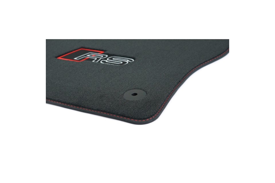 Audi A3 (8Y) RS velourse mattenset voor- en achterzijde (rode stiksels - witte letters)