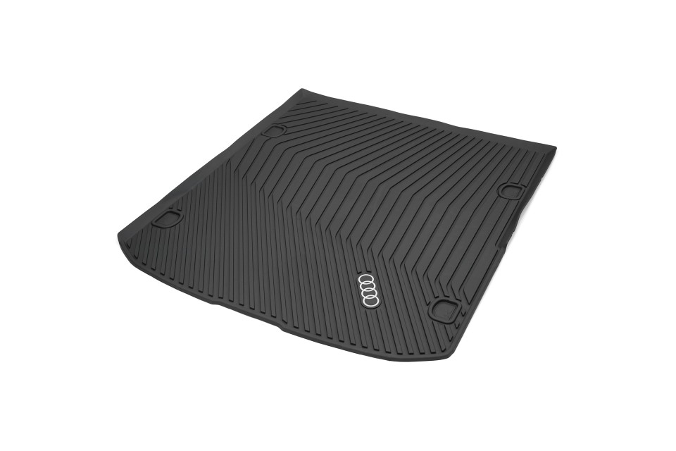 De opstaande rand voorkomt dat vocht en vuil in de kofferbak terechtkomen. Het oppervlak is antislip, wat zorgt dat bagage stevig op zijn plaats blijft. De mat is voorzien van contrasterende Audi-ringen, wat het interieur een luxe en originele uitstraling geeft.