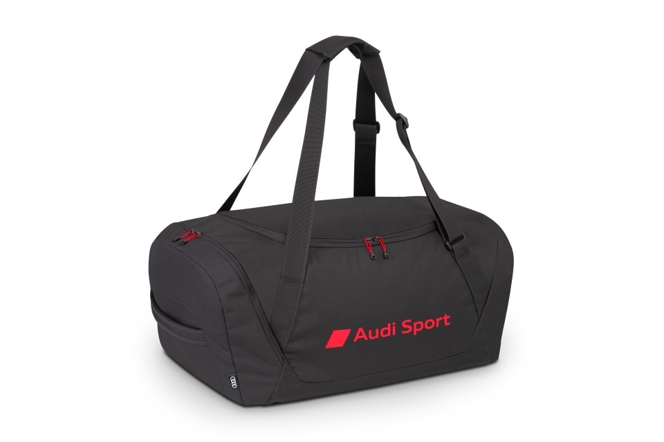 Audi Sporttas met ronde boogopening en ritssluiting.