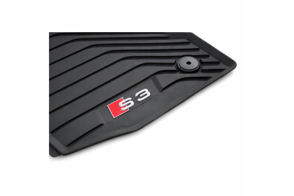 Originele Audi all-weather vloermatten voor de voorste voetruimte, ontworpen voor een perfecte pasvorm en optimale bescherming van het interieur van uw Audi A3. Deze duurzame rubbermatten zijn nauwkeurig afgestemd op de vloerafmetingen van het betreffende model en bieden maximale bescherming tegen vocht en vuil. Dankzij de antislipnoppen aan de achterzijde en het praktische drukknoop-bevestigingssysteem blijven de matten stevig op hun plaats liggen.