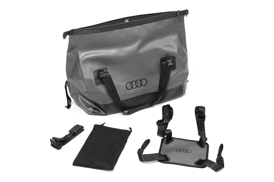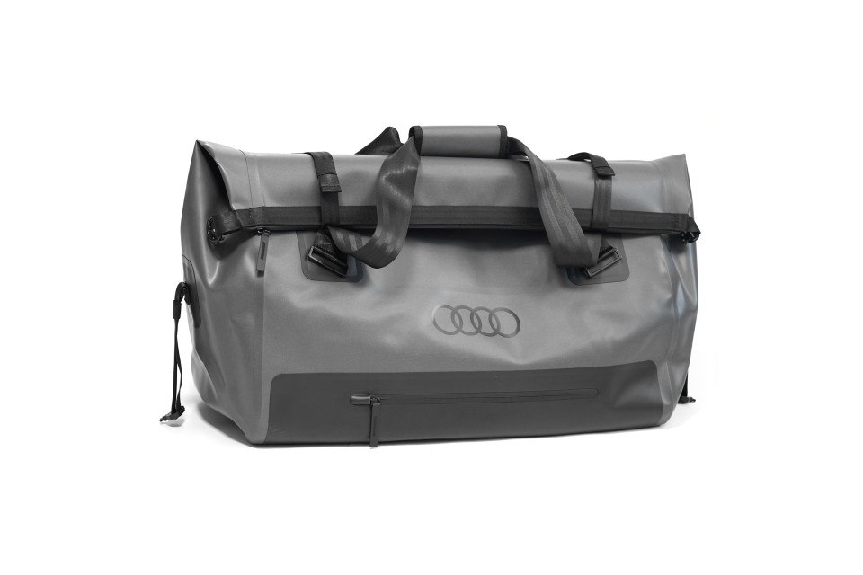 De universele Audi outdoor reistas is ideaal voor het overzichtelijk opbergen en vervoeren van bagage tijdens outdooractiviteiten. De robuuste, waterafstotende tas met Audi-branding is ontworpen voor transport op de Audi dakkoffer en biedt maximale functionaliteit en bescherming. Dankzij de rolsluiting met geïntegreerde rits is de tas flexibel te vullen, terwijl het waterafstotende materiaal met TPU-coating de inhoud beschermt tegen vocht en vuil. De tas beschikt over een geïntegreerd riemsysteem voor veilige bevestiging op de dakkoffer, twee handgrepen en een verstelbare schouderband voor optimaal draagcomfort. Geschikt voor een maximale belasting van 12 kg.