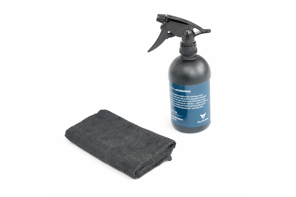 Microvezelspray en -doek voor het reinigen en verzorgen van alle lakken en niet-poreuze binnenlakken. Hiermee verwijdert u snel en veilig vuil veroorzaakt door wegverkeer, stof, resten van insecten en vogels, boomhars, oliën en vet (vingerafdrukken). Daarbij extra ontwikkeld voor het gebruik op CUPRA Matte lakken, hiermee houdt u uw lak mat.