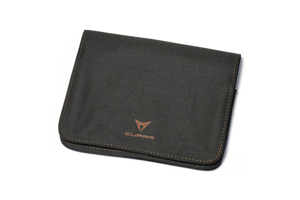 Deze originele CUPRA-hoes voor de handleiding van uw auto is vervaardigd uit flexibel en stijlvol synthetisch vezelmateriaal. Dankzij het CUPRA-logo en de koperkleurige stiksels rondom heeft de hoes een verfijnde uitstraling en een hoogwaardige afwerking. De hoes biedt ruim voldoende opbergruimte voor de voertuighandleiding, het onderhoudsboekje, visitekaartjes en overige documenten. Daarnaast kan de hoes ook uitstekend buiten de auto worden gebruikt, bijvoorbeeld voor schrijfwaren of kleine elektronische apparaten, zolang deze binnen de aangegeven afmetingen passen.