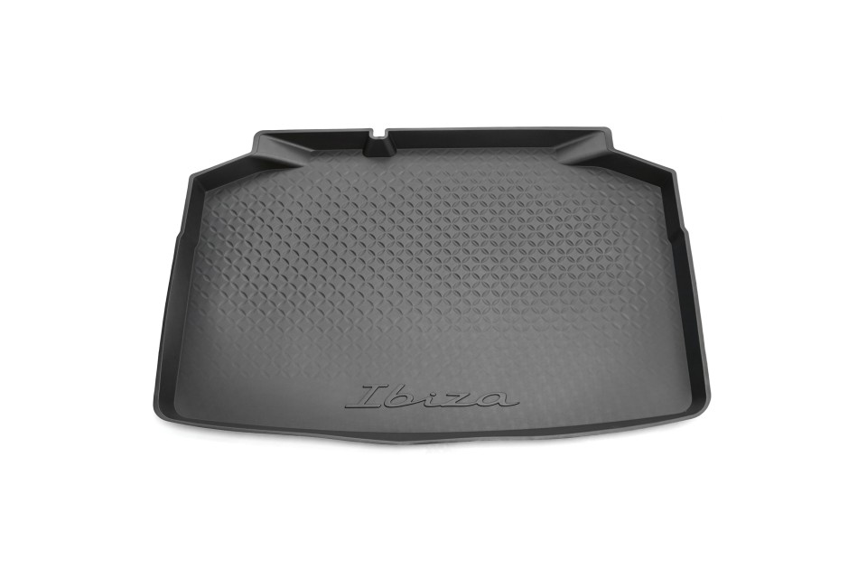Originele Seat Ibiza (6F) Facelift flexibele kofferbakbescherming met Panot-afbeelding en handgeschreven IBIZA-logo. Deze kunststof hoes past perfect in de bagageruimte zonder dubbele bodem en biedt uitstekende bescherming tegen vocht en vuil.