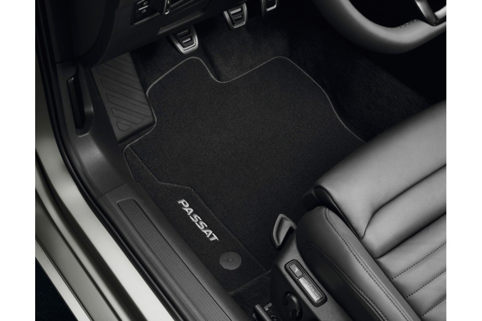De Volkswagen Original textielvloermatten van hoogwaardig en slijtvast velours met Passat-logo zijn een stijlvolle toevoeging aan het interieur en beschermen de vloerbekleding optimaal. Dankzij het 2-punts bevestigingssysteem blijven de premium vloermatten stevig op hun plaats en wordt verschuiven of verdraaien voorkomen.