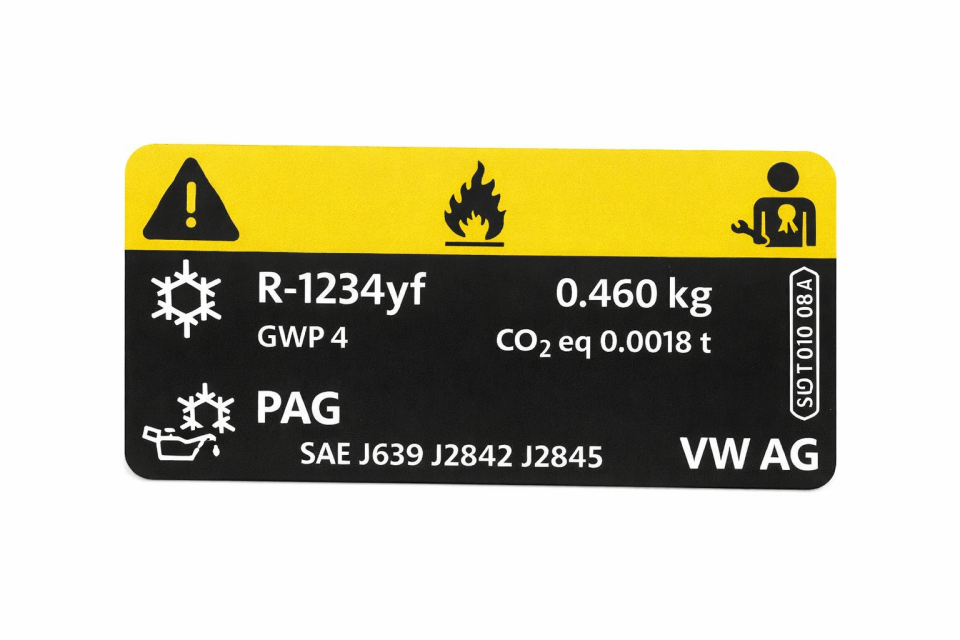 Originele Volkswagen aircosticker - koelmedium/vulhoeveelheid