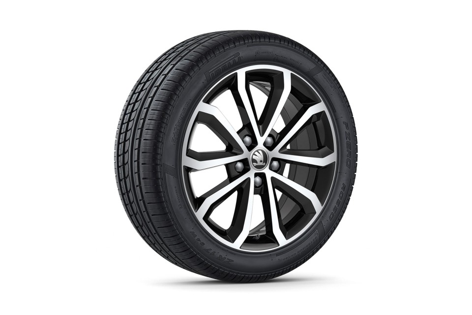 De Škoda Hawk 17 inch lichtmetalen velgen hebben een dynamisch en sportief design. De zwarte spaken zorgen voor een krachtige, opvallende uitstraling. Iedere velg is uitgebreid getest volgens de strenge Škoda-specificaties, zodat veiligheid, kwaliteit en duurzaamheid volledig worden gewaarborgd. Deze complete zomerset wordt geleverd inclusief hoogwaardige zomerbanden.