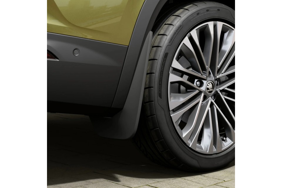 De spatlappen uit het Škoda Origineel Accessoireprogramma behoren tot de praktische accessoires die de gebruikswaarde van het voertuig verhogen. Dankzij de specifieke vorm sluiten ze perfect aan op de wielkuipen, waardoor er tijdens het rijden geen aerodynamische nadelen ontstaan.