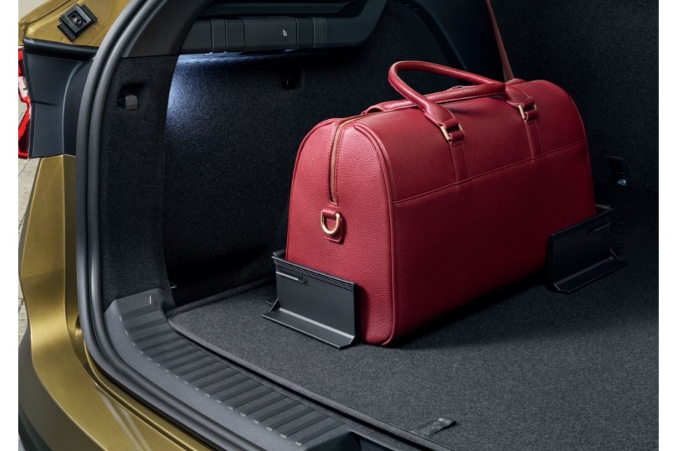 • 2 kunststof hoeken met klittenband fixeren voorwerpen stevig op het kofferbaktapijt (max. 8 kg)