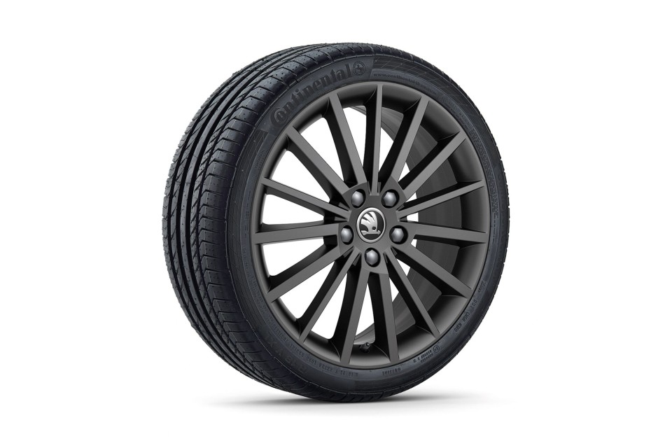 De Škoda Turini 18 inch lichtmetalen velgen hebben een strak en sportief design. De zwarte spaken geven de set een opvallende, moderne uitstraling. Iedere velg is getest volgens de strenge Škoda-specificaties, zodat veiligheid, duurzaamheid en rijcomfort gegarandeerd zijn. Deze complete zomerset wordt geleverd inclusief hoogwaardige zomerbanden.