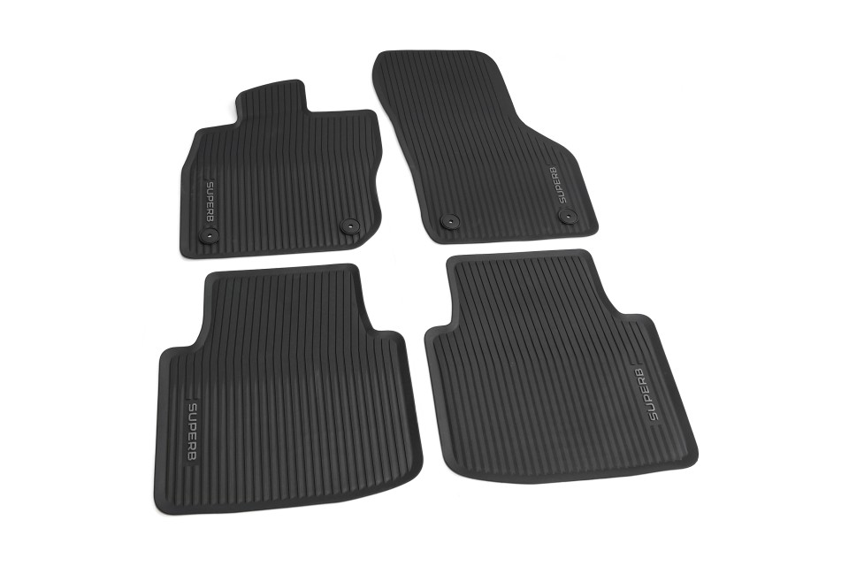 Originele Škoda Superb 4 (NZ) allweather rubberen vloermatten – een 4-delige complete set die perfect aansluit op de contouren van de voertuigvloer. Deze originele Škoda-accessoires bieden optimale bescherming tegen vuil, vocht en slijtage, en zijn ontworpen voor dagelijks gebruik onder alle omstandigheden.