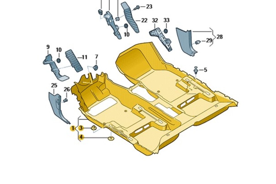 Vloerbedekking-zwart voor VW T-Roc. Dit is het deel wat onder de vloermatten komt.