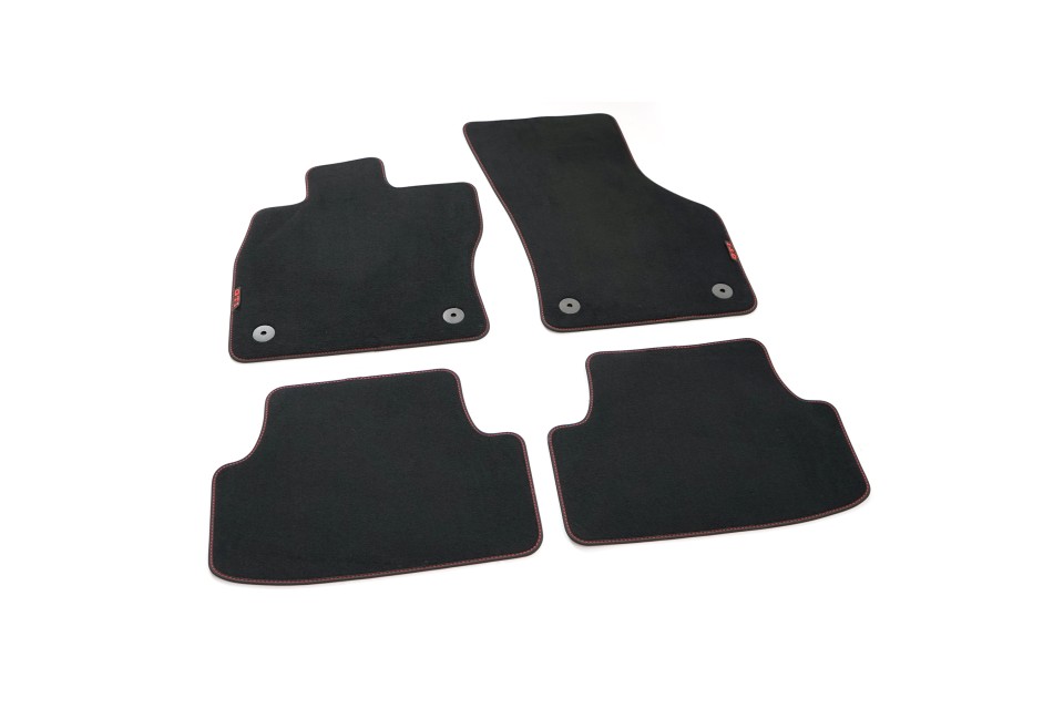 De originele Volkswagen Golf 8 GTI Edition 45 textiel vloermatten geven het interieur van uw voertuig een exclusieve en sportieve uitstraling. Deze vloermatten zijn exact op maat gemaakt en vervaardigd van hoogwaardig premium TFG-suède, wat zorgt voor een luxueuze afwerking en langdurige duurzaamheid. De rode stiksels en het GTI-logo op de voorste matten benadrukken het kenmerkende design van de Edition 45-uitvoering. Dankzij het handige drukknoopsysteem blijven de matten stevig op hun plaats.