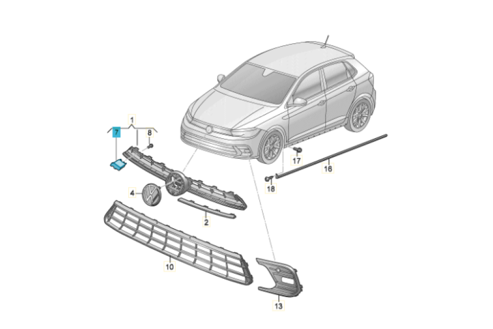 Origineel logo met opschrift R voor de Volkswagen Polo aan de voorzijde (grille).