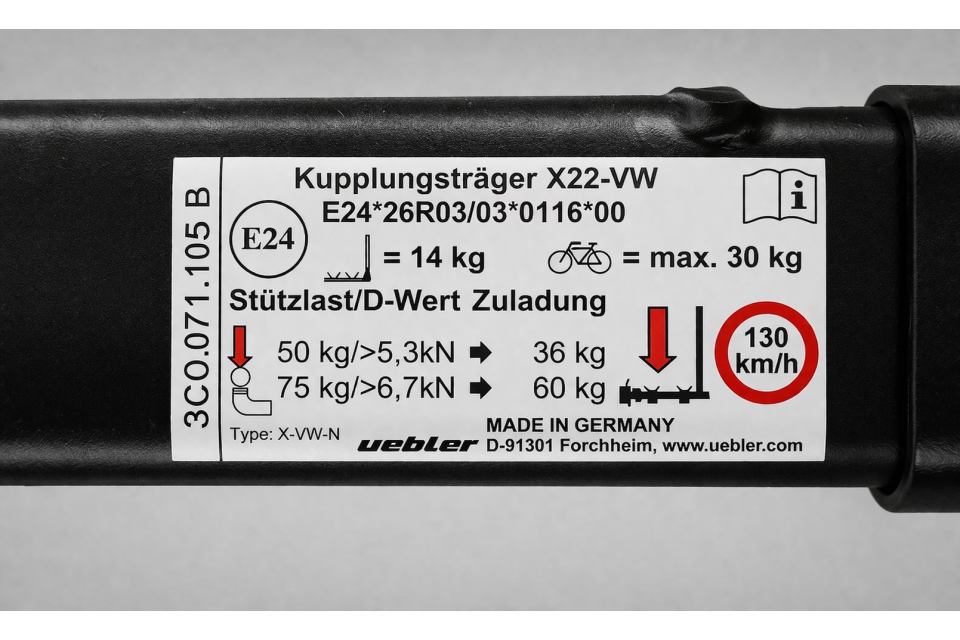 De Volkswagen fietsendrager wordt geproduceerd door de Duitse fabrikant Uebler, een specialist in ho..